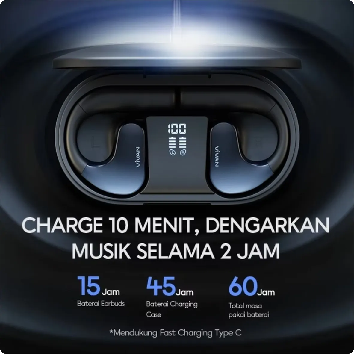 Vivan Sport X adalah earbud TWS (True Wireless Stereo) tipe open-ear yang dirancang khusus untuk pengguna aktif, terutama yang sering berolahraga atau bergerak banyak. Produk ini menggabungkan desain yang nyaman, tahan air, dan teknologi audio modern agar tetap kuat di aktivitas fisik sambil menawarkan suara yang jernih dan bass yang memuaskan.